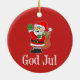Say Merry Christmas in Swedish with this cute God Jul Santa Ornament. Great for any Christmas tree. Celebrate your Swedish heritage this Christmas with this cute, cartoon Santa ornament!
