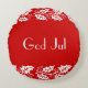 A red and white design with white holly berries. It comes with the text " God Jul," which translates to "Merry Christmas" in Swedish and other Scandinavian languages. You can customize this round pillow now with your own text .
