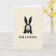 This design shows a centered black silhouette of a bearded man in profile, his long hair flowing back in a calm, classic outline. Two tall rabbit ears rise from the top of his head, turning the solemn profile into something gently humorous 🐇. The figure sits on a warm cream background with a faint, paper-like texture that softens the high contrast. Beneath the image, the words “God Listens.” are set in a dark serif typeface, aligned under the portrait and spaced to feel steady and grounded. The upright ears and quiet gaze suggest a caring attention, like someone leaning in to catch a friend’s words without interrupting. The simple layout leaves generous open space around the head, letting the affectionate, light touch come through without extra decoration 🌷. The cream field stays unbroken, with the black text and silhouette forming the only strong shapes on the front.