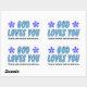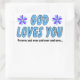 God loves you forever and ever and ever... This is a nice Christian image of a great saying written with blue letters and black outline. There are two blue and purple flowers in the design. Property design by Diligent Heart