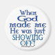 When God Made Me He Was Just Showing Off - Funny religious humor saying.