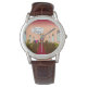 The watch looks really great! Very sharp and well done. The leather band is really nice, though for a man's watch I think it should be longer. Unfortunately, it isn't big enough for my husband's wrist but I will get a replacement because he is very excited to wear it!