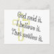 Design shows a special cross with words over it reading, "God said it. I believe it. That settles it." Fun way to wear show your faith in God and Christianity. Great gift for ordinations, birthdays, Christmas, Easter, first communions, confirmations, weddings, baptisms, and more.