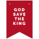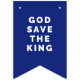 Patriotic British Union Flag called the "Union Jack" when flown. Red, white and blue. Celebrate the 2023 Coronation of King Charles III of Great Britain. Alternate flags in the banner have the words "God save the king".