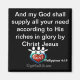 Our custom Bible Scripture Magnets will draw attention everywhere! These sleek black magnets fit with any décor. Place them on your fridge or file cabinet; it works in the home, school, or office. Be constantly reminded of God’s goodness. Collect them all! Make for excellent gifts. Scripture: "And my God shall supply all your need according to His riches in glory by Christ Jesus"
