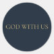 A minimalist “God With Us” Christmas sticker in deep navy blue (#0D1B2A) with elegant gold typography. Perfect for Bible journaling, planners, gift wrapping, envelopes, Christmas cards, and faith-centered holiday decor.