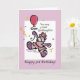 Wish your Goddaughter a 3rd Birthday full of fun and happiness with this colorful illustration. A cute teddy bear wearing a pink skirt with a balloon and a lot of confetti.