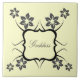Goddess Floral Customizable Tile in dark gray featuring a lovely swirl bracket surrounded by cascades of feminine flowers. This pretty tile would add a girly touch to any decor and would make a lovely gift to any female friend or relative. This product may be customized to suit your personal tastes. Change the text, fonts, and font colors to give this product a more personal feel.