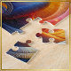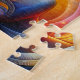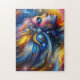 Relaxing Puzzle - Goddess Head cosmic Hair closed Eyes facing to the side Portrait - Month of June Vibes - This beautiful ai style Design shows a Head of a beautiful Woman with closed relaxed eyes and decorative glowing cosmic jewelry in her flowing hair, dwelling in a divine celestial Universe. The main colors in this art piece are gold orange yellow, cosmic deep blue.