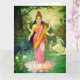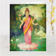 Lakshmi is depicted in Indian art as an elegantly dressed, prosperity-showering golden-coloured woman standing or siting in padmasana on a lotus throne, while holding a lotus in her hand, symbolizing fortune, self-knowledge, and spiritual liberation. Her iconography shows her with four hands, which represent the four aspects of human life important to Hindu culture: dharma, kāma, artha, and moksha.
