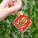 The key chain is made of metal and really sturdy. The flower design is really cheerful. The logo and colors are clear and crisp!