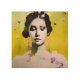 A gorgeous goddess of spring with pink flowers on a yellow background
