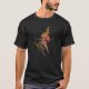 My 11 yo wore adult XL (5’7” 165#). The 8yo is small framed. She wore adult small and tied it in the back. Grandma wore adult large with long sleeve shirt underneath. Tall girl adult medium. Dark haired male adult large. Good quality dark Heather gray, Gildan brand shirt. -it was next up from basic choice and cost about $20 per shirt. Not too thick or thin. Washed and dried well, no major shrinkage. Not see-through. Can wear a bra under it fine. Screen print is just as shown and well done, front and back.