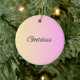 Lightweight, smooth, pure white ornament with nice sheen. Perfect size to be seen from across the room ... and to attract closer inspection! Price was great for ordering enough for the whole family! Clear, bold black design just as requested. Matches the order exactly. Just so nice!