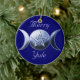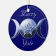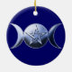 Triple goddess symbol, three lunar phases. Full moon with pentagram, waxing and waning moon. Mystical, translucent blue on black. Womankind, Mother, maiden and crone. Gift for Wiccans and neo-Pagans.