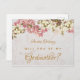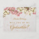 This elegant floral "Will you be my Godmother?" proposal postcard has a marble background and pink and white orchids on its upper border.