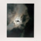 Bright light shines through dramatic clouds highlighting a pair of sneakers hanging from a power line.