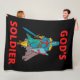This fleece blanket has the words God's Soldier in a bold print font plus red letters with a soldier in full armor holding a sword plus shield in the center with a faith based theme. This Blanket is made from 100% buttery soft and cozy polyester fleece with edge-to-edge vibrant full color sublimation printing and double edge stitching with a off-white colored back machine washable.