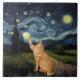 Gogh Kitty Starry Night Cat Ceramic Tile