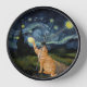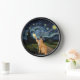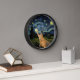 Introducing our latest addition the enchanting "Gogh Kitty" clock. This unique piece masterfully combines the classic beauty of Vincent Van Gogh's "Starry Night" with a whimsical twist—a charming cat playfully swatting at the swirling stars above. The vivid blues and yellows of the iconic painting serve as a mesmerizing backdrop, while the silhouette of the cat adds an element of playfulness and warmth to the scene. Crafted with exquisite detail, this item brings a touch of whimsy and artistic elegance to any room. Whether you're looking to add a splash of color to your living space or searching for the perfect gift for the art lover in your life, "Gogh Kitty" is sure to captivate and charm all who lay eyes on it. Printed on high-quality, durable material, this item is designed to maintain its vibrancy and allure for years to come. Transform your space with this delightful fusion of classic art and playful imagination—a truly unique piece that celebrates the beauty of the night sky and the curious nature of our feline friends.
