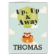 This very cute cartoon illustrated card features an adorable woodland fox riding in the cute hot air balloon up in the clouds! With big black lettering over the top that reads Up, Up and Away (like the song - up and up and away in my beautiful balloon) with room below for you to edit with any name you wish.
