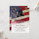 Patriotic military party invitation to celebrate a soldier going away on national service, or to celebrate them coming home. Featuring a red, white and blue flag, marine troop boots, string lights, and a modern party template.