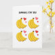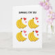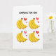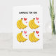 This cheerful greeting card features four bunches of bright yellow bananas arranged in a tidy grid on a white background. Each bunch is detailed with soft darker lines to show individual bananas, along with brown stems and small chocolate-brown tips. Red and pale pink hearts float around each bunch, adding a warm and affectionate touch. Centered at the top, the message “BANANAS FOR YOU” is printed in bold black, all-caps block letters that are easy to read and full of charm. The simple layout keeps the focus on the fun artwork and sweet message. This card feels lighthearted and caring, making it a great choice for sharing smiles and affection with a partner or a close friend on Valentine’s Day.