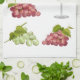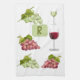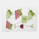 A design that consists of green and purple grapes along with a glass of white and a glass of red wine