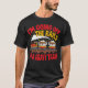 This black t-shirt features a cartoon train with gravy boats as its cars, puffing white smoke. The text "I'M GOING OFF THE RAILS ON A GRAVY TRAIN" is playfully arranged around the train illustration in red and yellow lettering. The design is whimsical and food-themed, suggesting indulgence or losing control in a fun way.