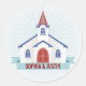 A classic white chapel with steeple and banner. Customize with your own text. Great for any christian, country, rustic, outdoor, celebration. Original Illustration by pj_design. Please check my store for matching items.