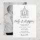 Charming “going to the chapel” design with a hand-drawn wedding chapel in black and white. Ideal for romantic, minimalist bridal suites, wedding stationery, and coquette-inspired celebrations.