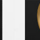 Wallpaper that is extravagant, eye-catching, and kitschy featuring a large gold heart in a 3D effect on a black-and-white striped background.