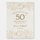 Ivory gold floral 50th anniversary welcome sign. Modern design featuring botanical outline drawings accents, faux gold foil and typography script font. Simple trendy sign perfect for a stylish wedding anniversary celebration.