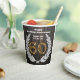 Elegant Wedding Anniversary paper cups with a diamond laurel pattern and a gold nugget number.