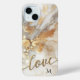 Phone case featuring an original painting in gold and ivory with (optional) your own monogram or other text. The love script text is on a separate file and can be deleted if you do not need it.