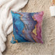 Gold Abstract Modern Monogram Initial Throw Pillow Cushion. Features gorgeous gold over vibrant shades of pink, blue, and purple abstract washes with beautiful gold veined accents. With transparent creamy white center with a thin border shown in charcoal with a customizable charcoal gray monogram initial. For added variety the back is shown with the artwork only without the monogram center visible (you can change it to visible in the customization menu if you like).