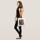 Gold Abstract Modern Monogram Initial Tote Bag. Features gorgeous gold over vibrant shades of pink, blue, and purple abstract washes with beautiful gold veined accents. With transparent creamy white center with a thin border shown in charcoal with a customizable charcoal gray monogram initial.