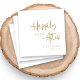 Celebrate your happily ever after with these elegant gold accent script wedding napkins that can be personalized with your names and date. The napkins feature a beautiful "Happily Ever After" script design in gold accent on a white background, and they are perfect for any wedding theme. The napkins are sure to add a touch of sophistication and luxury to your special day, and they will make a lasting impression on your guests.