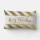 This elegant Christmas pillow is designed with gold colored festive text: Merry Christmas, on a white background, with gold colored stripes. Makes a great gift, or as an addition to your Holiday Home Decor.