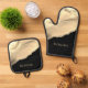 Gold Agate & Glitter, Gold Name on Black Oven Mitt & Pot Holder Set