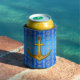 Gold Anchor Blue Cerulean Can Cooler