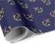 Gold Anchors Navy Blue Background Pattern Wrapping Paper