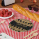 Gold yellow and black art deco retro pattern wedding paper plates. 1920's style.