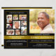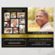 Funeral program designed with black and gold design. Easy to edit and customize, this template has a photo collage on the back page with space for 9 photos. The inside pages have an example obituary and order of service but these can be replaced with more photos or your own text, such as poems, song lyrics or a reading.