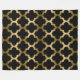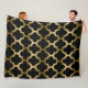 Gold And Black Ikat Quatrefoil Geometric Pattern Fleece Blanket