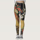 Gold and Black Oriental Japanese Kimono Floral Leggings