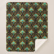 Gold and blue Art Deco pattern on black Sherpa Blanket
