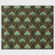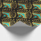 Gold and blue Art Deco pattern on black Wrapping Paper