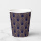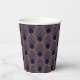 Gold and blue art deco pattern paper cups. A gold on blue art deco inspired motif. 1920s Gatsby style.