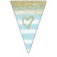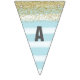 Banner with "happy birthday" wordings, faux gold glitter design and blue stripes pattern background.
